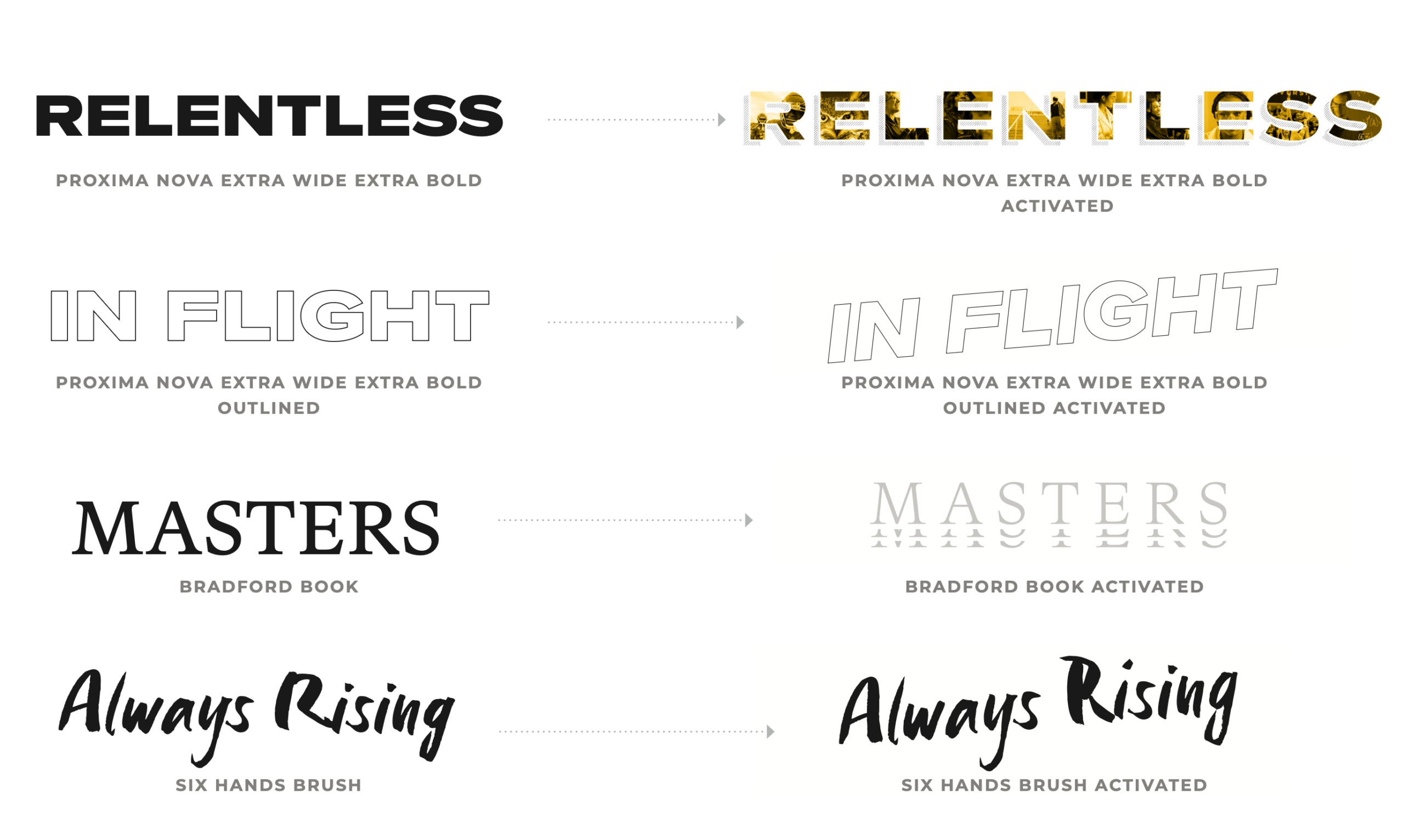 In addition to our regular typography, the activated typography brings in more visual interest while communicating elements of the brand.